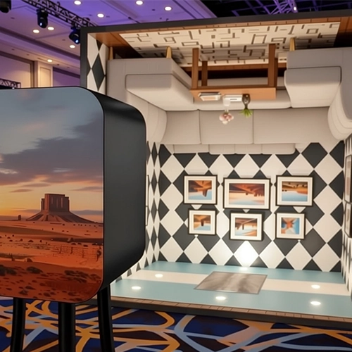 Custom walls, flooring, and digital overlays ensure every image carries your campaign.