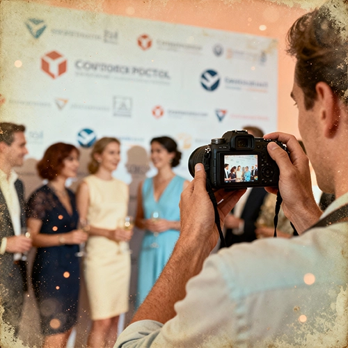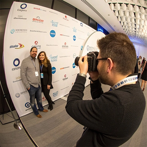 Custom frames, overlays, color grading, and step-and-repeat backdrops aligned to your campaign.