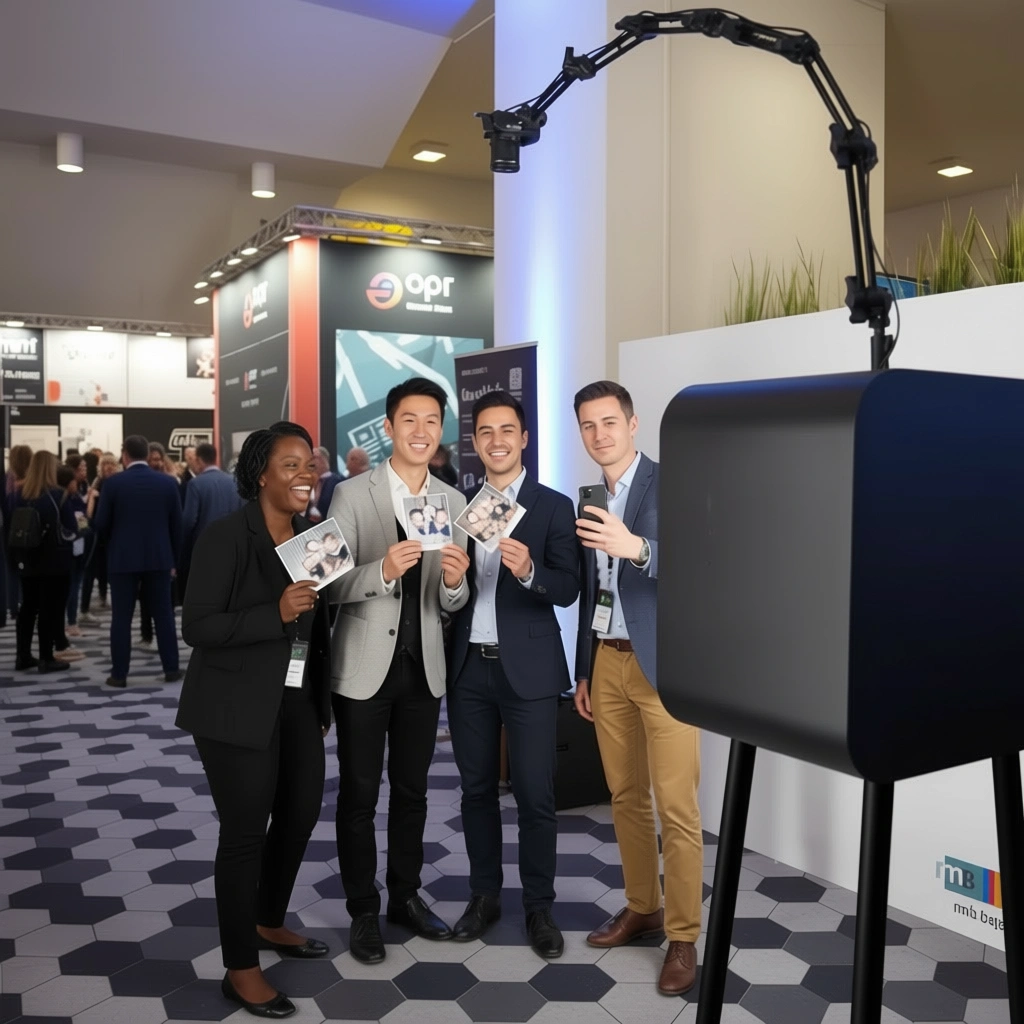 Backdrops, floor decals, props, and on-screen frames/overlays tailored to your identity.